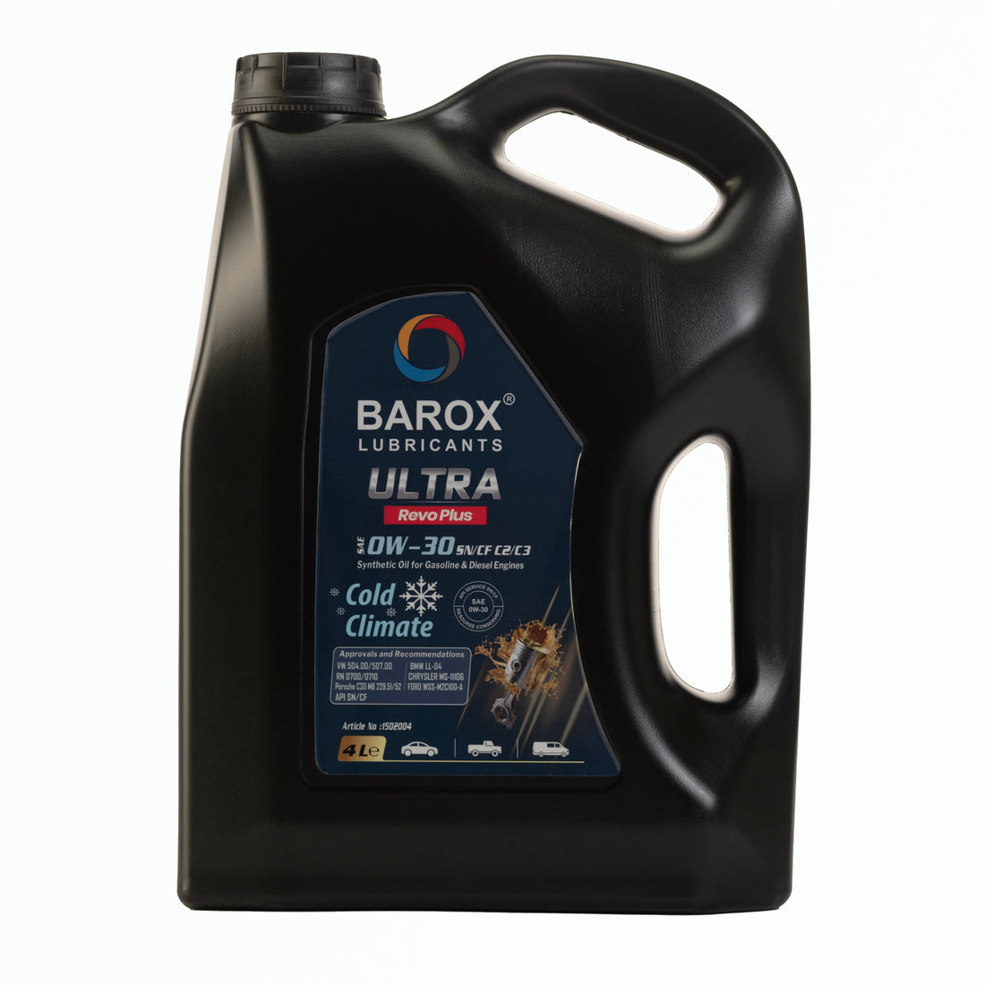 BAROX ULTRA REVO PLUS 0W-30 API SN/CF, ACEA C2/C3– Современное, полностью синтетическое моторное масло с длительным сроком службы, специально разработанное с учетом последних требований по увеличению интервалов технического обслуживания. Это малозольное моторное масло разработано для продления срока службы и поддержания эффективности систем снижения токсичности отработавших газов автомобилей как с дизельным, так и с бензиновым двигателем. Предназначено для бензиновых и дизельных двигателей с турбонаддувом и насос-форсунками, либо без них. Сочетание синтетического базового масла с передовой технологией присадок позволило создать моторное масло с гарантированной низкой вязкостью, обладающее устойчивостью к высоким сдвигам.