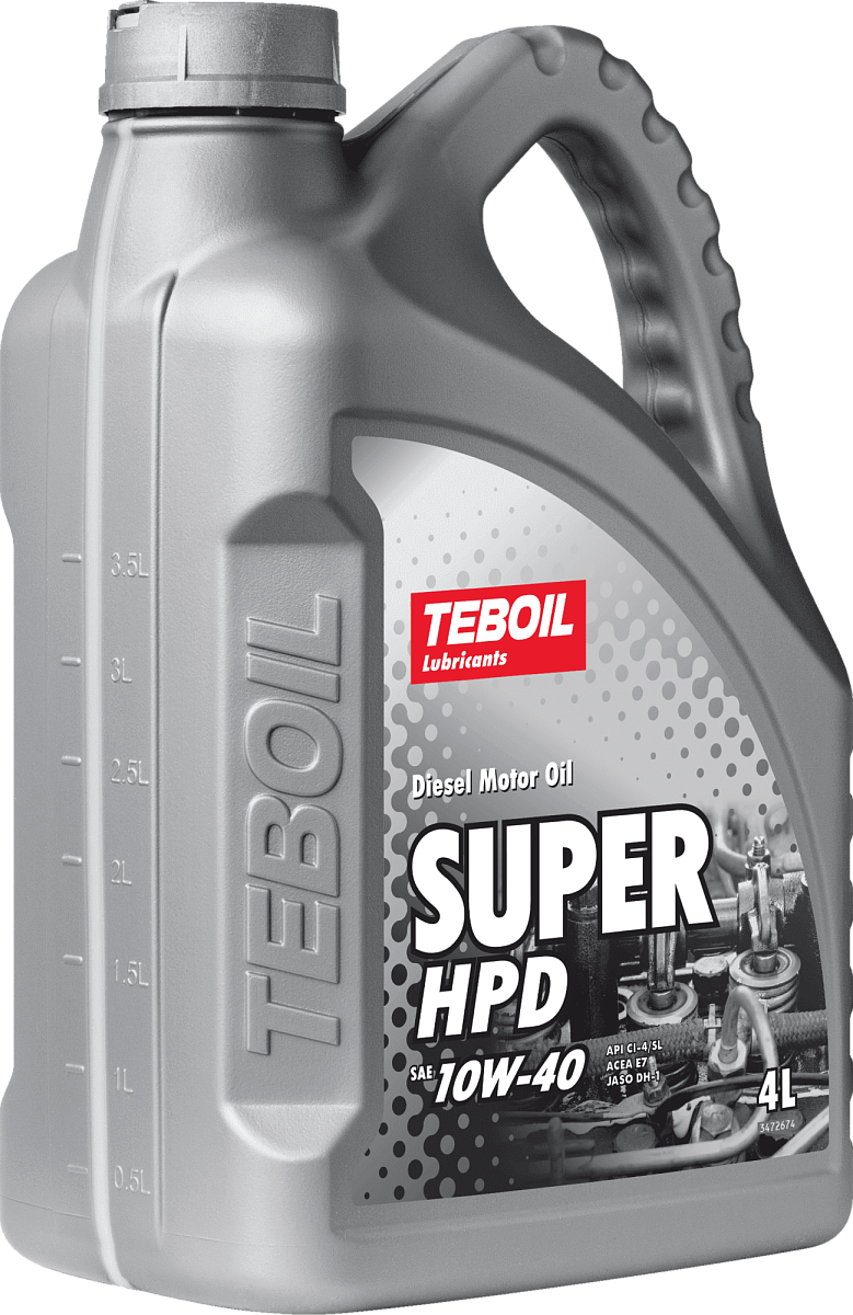 TEBOIL Super HPD SAE 10W-40 - Моторное масло на основе синтетической технологии для всесезонной эксплуатации в дизельных двигателях коммерческого транспорта и внедорожной техники, работающей в тяжелых условиях. Выполняет требования ведущих мировых производителей грузовой техники и незаменимо в тех случаях, когда необходим легкий запуск двигателя и максимальная защита при высоких нагрузках, что особенно актуально при эксплуатации техники в условиях низких температур окружающего воздуха. Обладает улучшенными низкотемпературными свойствами за счет входящих в состав синтетических базовых масел. Обеспечивает высокую стойкость к образованию отложений в двигателе за счет превосходных моюще-диспергирующих и антиокислительных свойств.