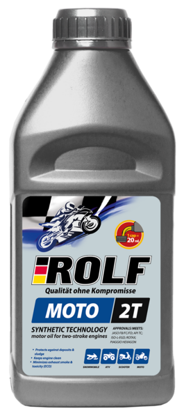 Rolf Moto 2T - Полусинтетическое малозольное масло для двухтактных двигателей. Отвечает требованиям самой жесткой категории JASO FD, что позволяет эксплуатировать технику в тяжелых условиях и на высокоскоростных режимах. Высокие эксплуатационные показатели ROLF MOTO 2T гарантируют чистоту деталей двигателя, обеспечивают защиту от отложений в камере сгорания и выпускном тракте, продлевают срок службы свечей зажигания. Совершенный пакет присадок даёт ROLF MOTO 2T отличную смазывающую способность независимо от системы смазки и охлаждения двигателя, обеспечивая при этом превосходную защиту от износа и коррозии.