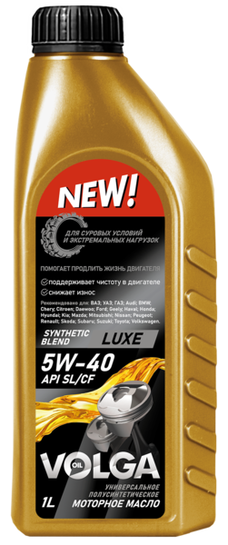 VOLGA OIL LUXE 5W-40 API SL/CF – предназначено для современных высокофорсированных бензиновых и дизельных двигателей легкового и коммерческого транспорта, работающих в различных условиях эксплуатации. Изготовлено на основе синтетических базовых масел и высокотехнологичного пакета присадок.