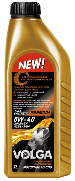 VOLGA OIL PREMIUM 5W-40 A3/B4, SN/CF - синтетическое моторное масло для бензиновых и дизельных двигателей легкового и легкого коммерческого транспорта. Изготовлено на основе синтетических базовых масел и высокотехнологичного пакета присадок.