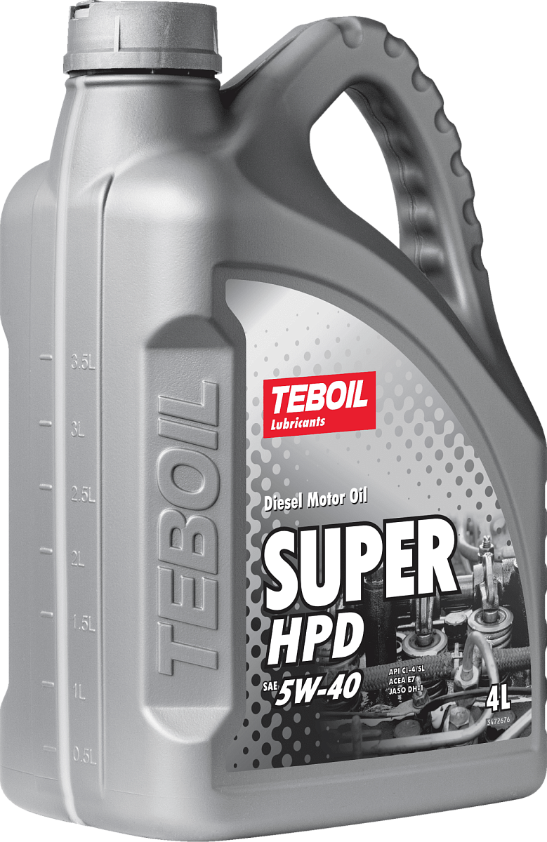 TEBOIL Super HPD 5W-40 - Полностью синтетическое всесезонное моторное масло для тяжелонагруженных дизельных двигателей коммерческого транспорта и внедорожной техники, работающей в тяжелых условиях. Соответствует требованиям ведущих производителей грузовой техники и незаменимо в тех случаях, когда необходим легкий запуск двигателя и максимальная защита при высоких нагрузках, что особенно актуально при эксплуатации техники в условиях низких температур окружающего воздуха.