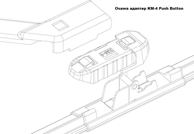 Адаптеры Osawa OMA 24 (KM-4B), крепление Push Button 19 мм. (Нажимная кнопка). Изготовлены из качественного пластика, очень жестко фиксируются к перекладине седла щетки стеклоочистителя и к поводку. На щетке стеклоочистителя адаптеры Osawa выглядят как родные, то есть практически не выступают по высоте относительно высоты щетки. Адаптеры упакованы по 2 штуки в комплекте. Специально для бескаркасных, зимних и бескаркасных модифицированных (рессорных) щеток стеклоочистителя Osawa.