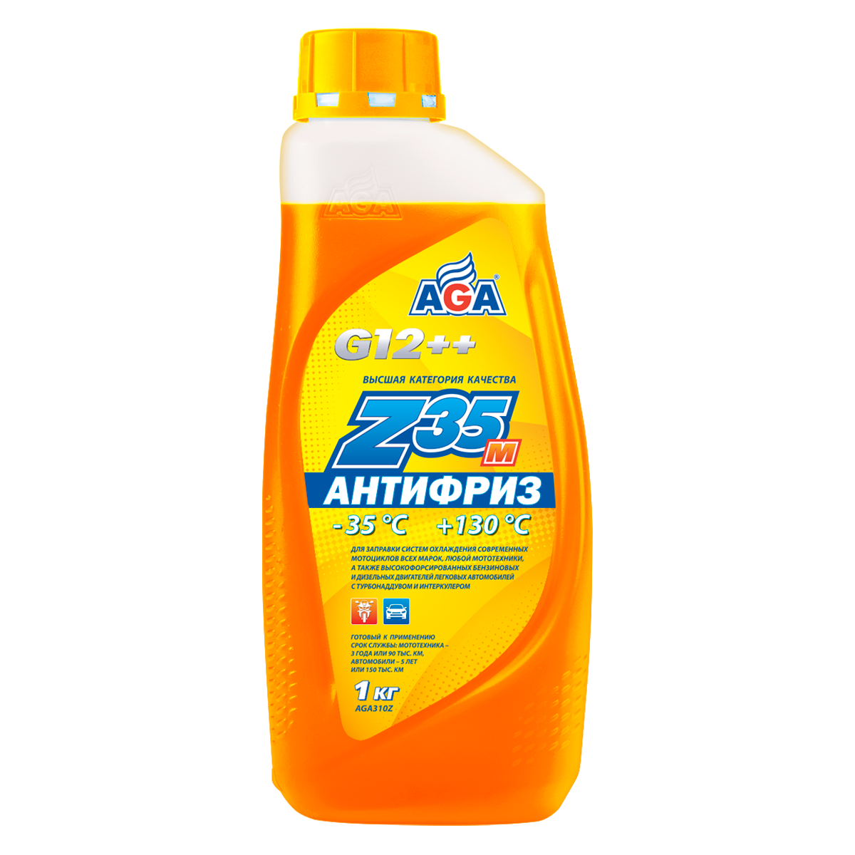 Антифриз AGA-Z35м – это универсальная охлаждающая жидкость высшей категории качества. Предназнаячен для заправки систем охлаждения современных мотоциклов, мототехники всех видов, а также высокофорсированных бензиновых и дизельных двигателей легковых автомобилей всех марок с турбонаддувом и интеркулером.