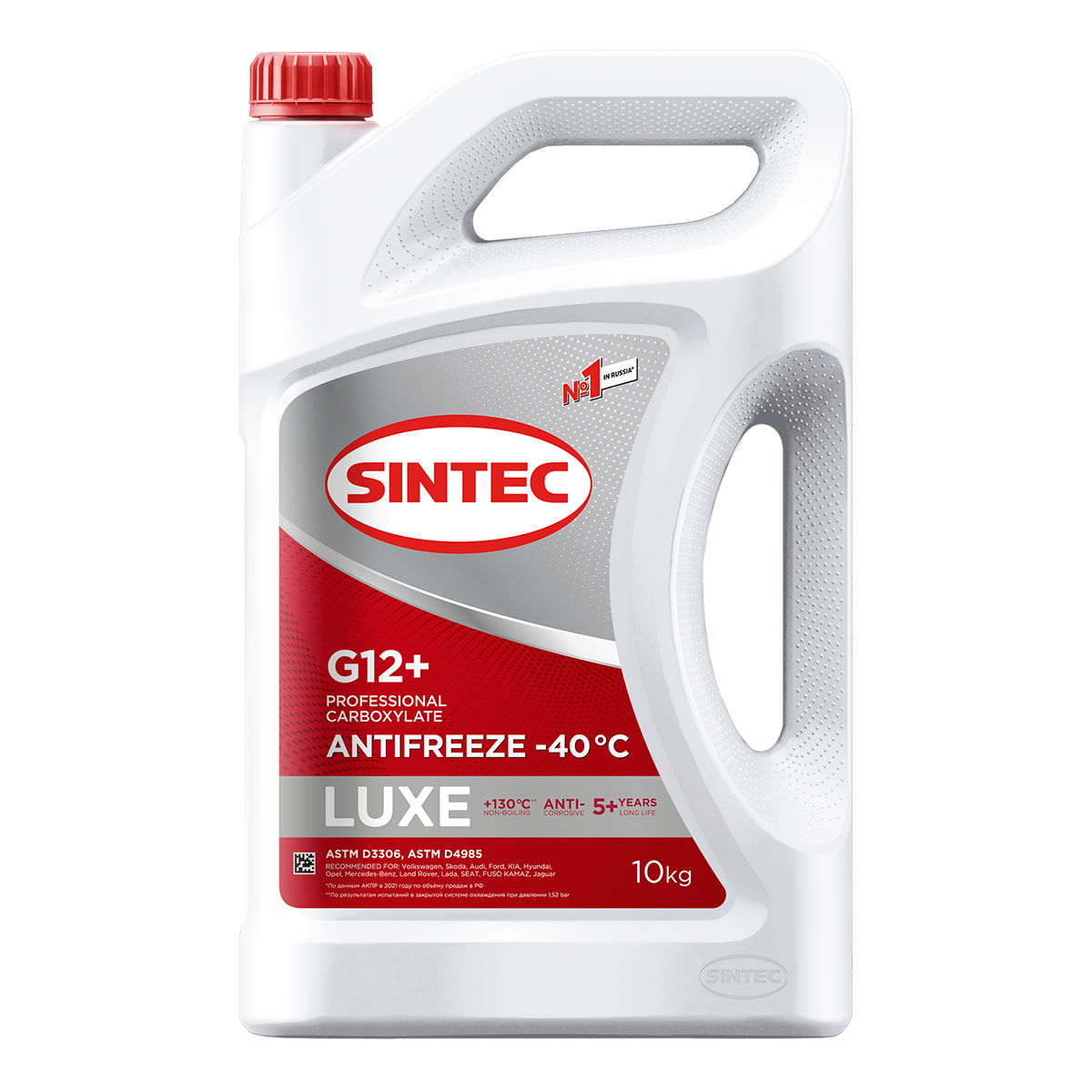 Sintec Antifreeze Luxe G12+ red -40 - готовая к применению высококачественная низкозамерзающая охлаждающая жидкость. Изготовлена из моноэтиленгликоля и пакета присадок на основе органических ингибиторов коррозии OAT, не содержащая нитритов, нитратов, аминов, фосфатов, боратов и силикатов. Наилучшим образом подходит для высокооборотистых и термонагруженных двигателей.