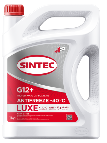 Sintec Antifreeze Luxe G12+ red -40 – готовая к применению высококачественная низкозамерзающая охлаждающая жидкость. Изготовлена из моноэтиленгликоля и пакета присадок на основе органических ингибиторов коррозии OAT, не содержащая нитритов, нитратов, аминов, фосфатов, боратов и силикатов. Наилучшим образом подходит для высокооборотистых и термонагруженных двигателей.