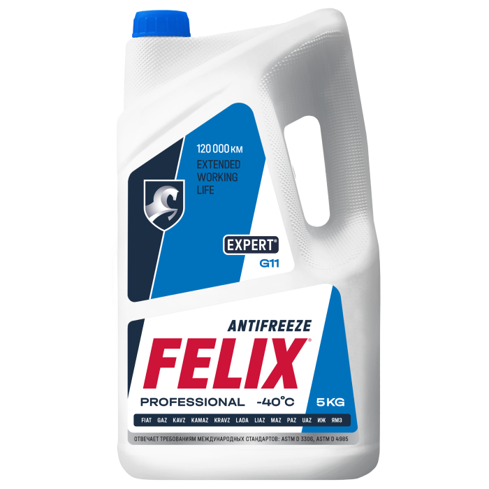 Антифриз FELIX EXPERT представляет собой жидкость охлаждающую низкозамерзающую на основе этиленгликоля и специально очищенной воды, не содержащую нитритов, аминов и фосфатов. Разработан по гибридной технологии, содержит в себе набор силикатных присадок. Обеспечивает высокую степень защиты от замерзания, коррозии и перегревания ДВС широкого ряда транспортных средств. Эффективно защищает от коррозии и образования накипи, осадков и шламов