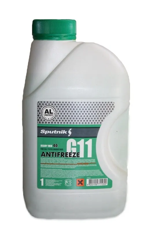 Готовые к применению Антифриз SPUTNIK G11 -40 зелёный. В состав антифриза входит флуоресцентный краситель, использование которого позволяет быстро определить места протечки. Для этого достаточно просветить предполагаемое место ультрафиолетовой лампой.