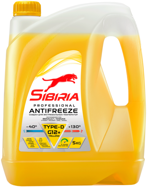 Антифриз Sibiria -40 G12+ TYPE-D - Жидкость охлаждающая низкозамерзающая изготавливается по новейшей технологии органических кислот (ОАТ) из этиленгликоля высшего сорта и импортного пакета функциональных присадок.