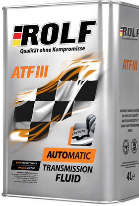 ROLF ATF III предназначена для большинства автоматических трансмиссий современных легковых и грузовых автомобилей, для гидроусилителей управления, где рекомендуется использование жидкостей спецификации GM Dexron III в автоматических КПП Allison, ZF, Voith, MAN и других производителей в соответствии со списком соответствий. Допускается применение в гидроусилителях рулевого управления там, где рекомендуется применение жидкостей спецификации GM ATF DEXRON III.