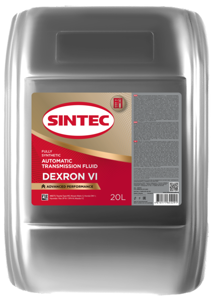 SINTEC ATF VI - Высокотехнологичная маловязкая жидкость с отличными показателями фрикционной стабильности и стойкости к механическому износу, что позволяет обеспечить плавные переключения и бесперебойную работу коробки передач в течение длительного времени. Жидкость разработана специально для современных автоматических трансмиссий европейских, американских и азиатских производителей с 6-ю и более ступенями, а также систем гидроусилителя руля и гидромуфт, для которых регламентировано использование жидкости со спецификацией DEXRON VI.