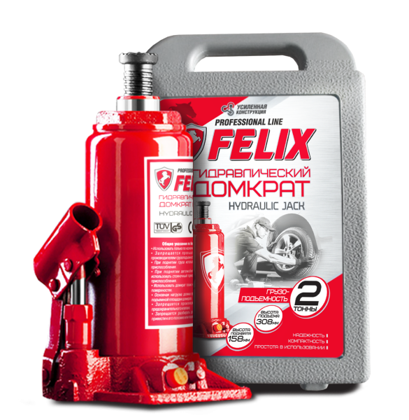 Домкрат FELIX удобен в использовании — при подъеме груза физические усилия необходимы только при нажатии на рычаг для подкачки рабочей жидкости в цилиндр. Домкраты FELIX могут использоваться как в автогаражных мастерских, на станциях шиномонтажа, так и автомобилистами, которые сами привыкли обслуживать свои автомобили.