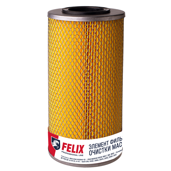 Фильтр FELIX 840 М масляный состоит из гофрированного фильтровального материала, внешней защитной металлической сетки, внутренней металлической трубки-сепаратора, двух торцевых металлическаих крышек, уплотнительного кольца.