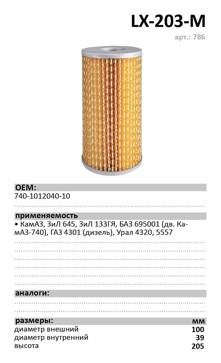 Фильтр масляный, вставка LUXE LX-203-M