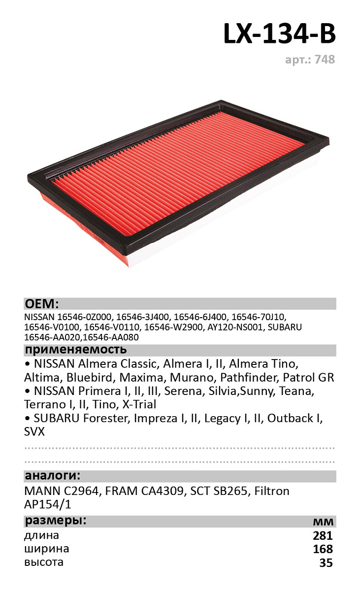 Фильтр воздушный LUXE LX-134-B