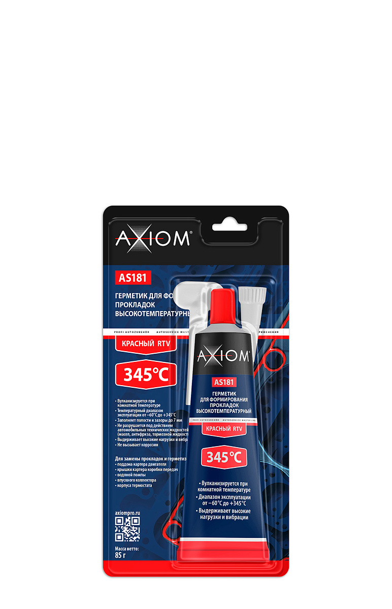 AXIOM AS181Высокотемпературный однокомпонентный автомобильный силиконовый герметик. Применяется для формирования или ремонта прокладок в узлах автомобиля, подверженных воздействию высоких температур, таких как поддон картера и коробки передач, водяной насос, крышка газораспределительного механизма, корпус термостата и других. Способен заменить прокладки, сальники, а также бумажные, резиновые, металлические и другие уплотнители.