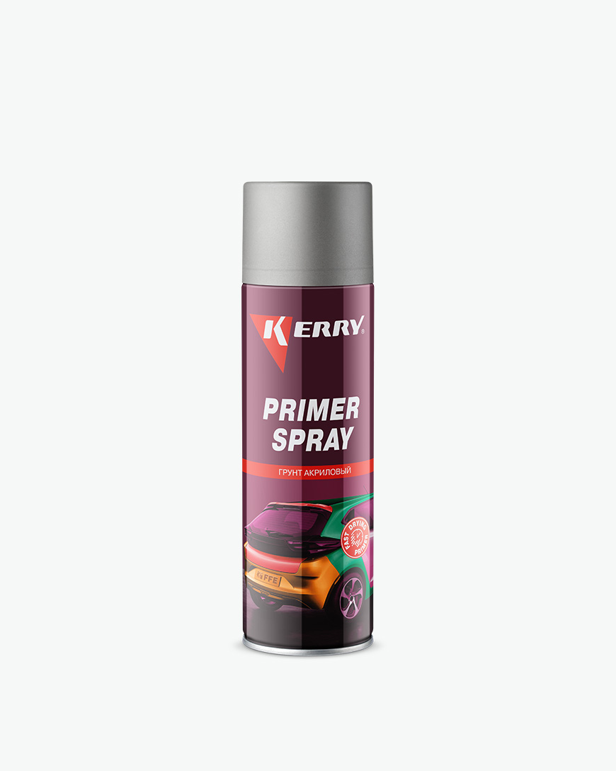 - Грунтовка KERRY® PRIMER SPRAY за счёт прекрасной адгезии способствует прочному сцеплению основного покрытия с окрашиваемой поверхностью.