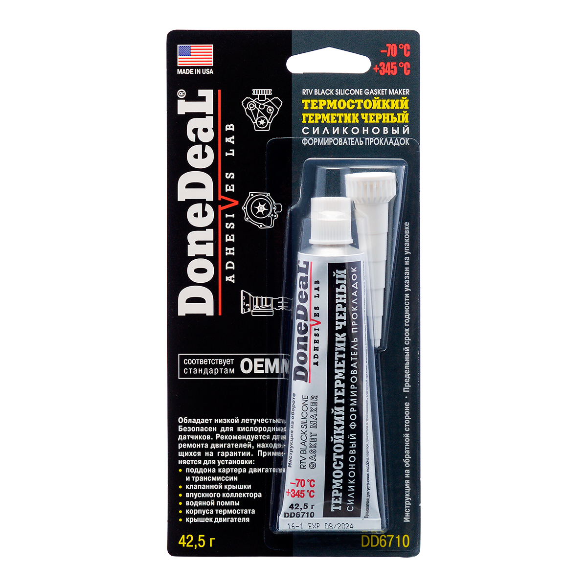 - Устойчив к воздействию автомобильных жидкостей, включая моторные и трансмиссионные масла, ATF, воду, антифриз.