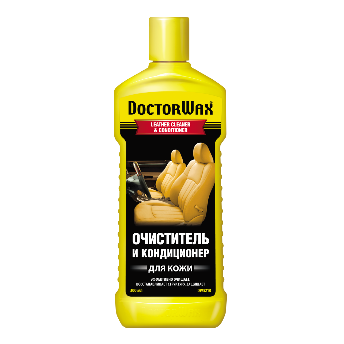 Эффективно очищает, восстанавливает структуру и защищает кожаную обивку салона автомобиля за одно применение.