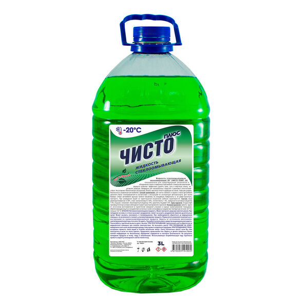 Жидкость стеклоомывающая низкозамерзающая Чисто плюс -20. Предназначена для чистки и предотвращения загрязнения и обледенения стекол автомобиля. В зависимости от температуры воздуха возможно разведение жидкости водой согласно установленных пропорций. В зимнее время, при нахождении машины на открытой автостоянке, не рекомендуется разбавлять жидкость водой. Условия хранения: Хранить в закрытой упаковке, в недоступном для детей месте, вдали от электронагревательных приборов. Не подвергать воздействию прямых солнечных лучей и атмосферных осадков в соответствии с ОСТ6-15-90.