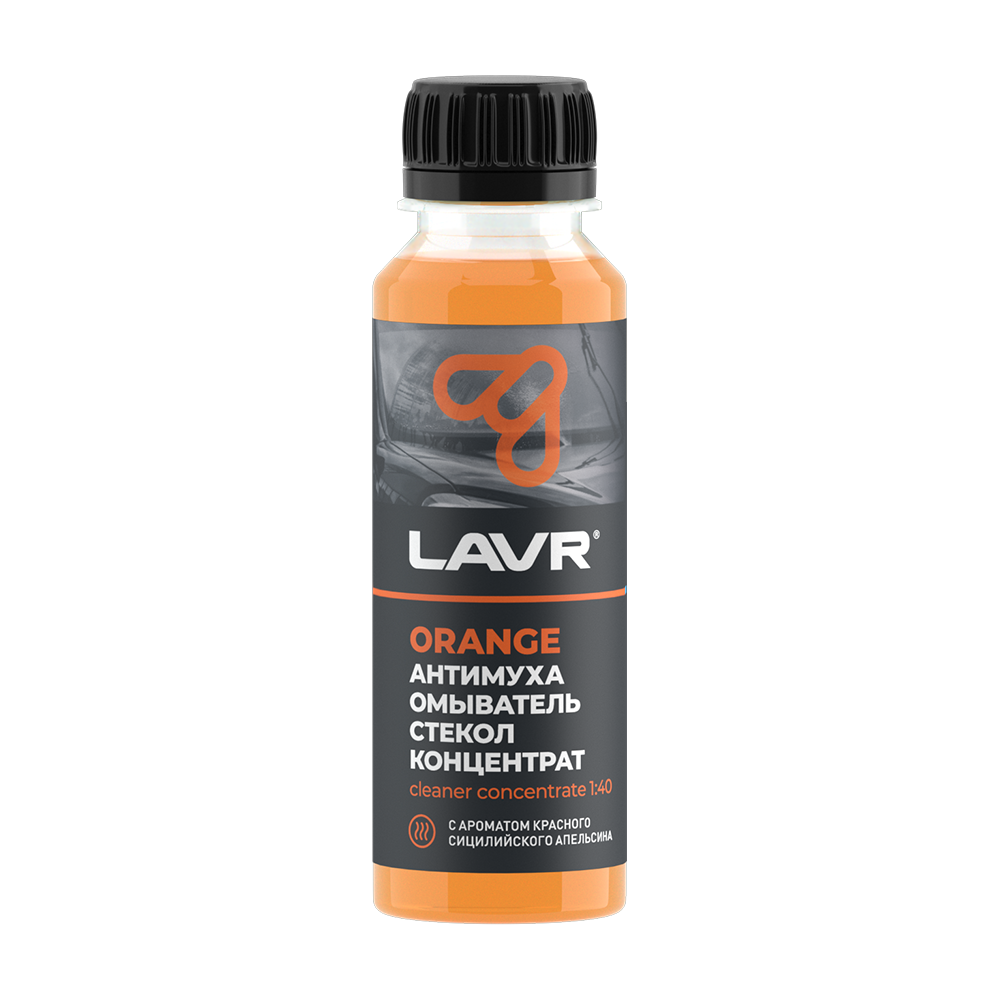 Омыватель стекол Антимуха Orange LAVR – концентрат жидкости для очистки стекол и фар автомобиля. Средство с повышенной моющей способностью быстро удаляет все виды загрязнений. Экономично расходуется и обладает легким цитрусовым ароматом.