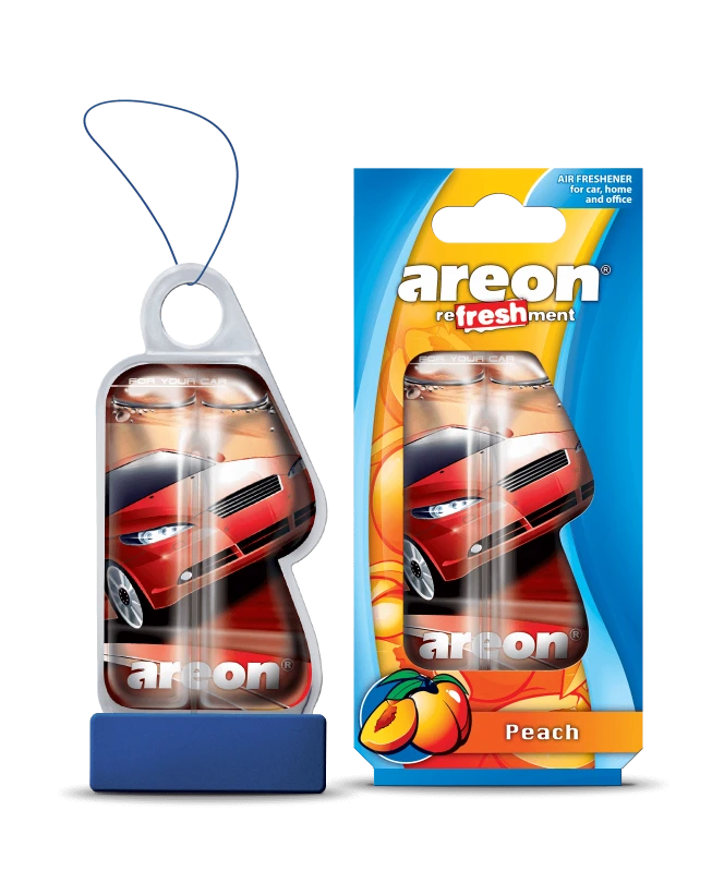 Ароматизатор подвесной Areon REFRESHMENT LIQUID Peach - Вкусите бархатный фруктовый аромат, создающий ощущение сладких и зрелых фруктов.
