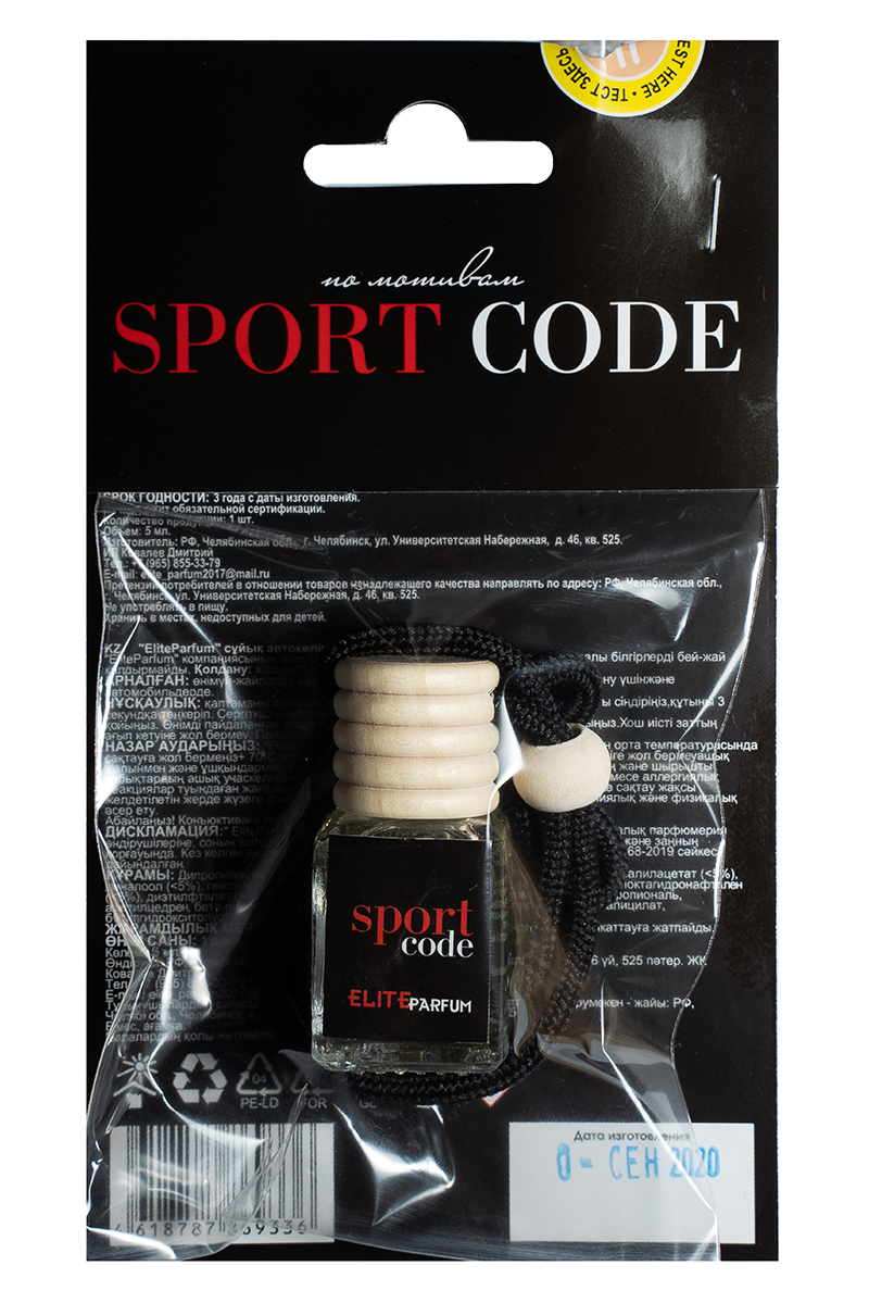 Ароматизатор подвесной ELITE PARFUM Sport Code - Мягкий и свежий в начале благодаря лимону и сандарину. В «сердце» парфюма проскальзывакт мятный привкус, в шлейфе собраны ноты амбры, ветивера и имбиря.