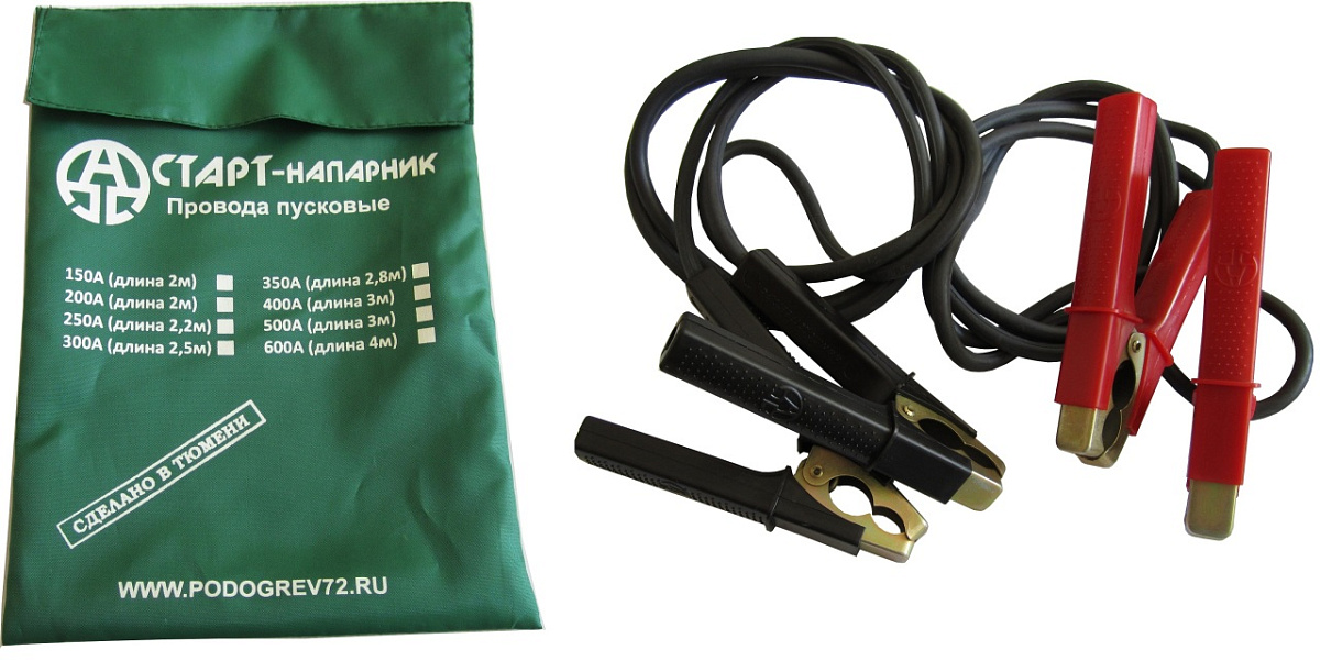 Пусковые провода "СТАРТ-Напарник" предназначены для соединения одноименных клемм аккумуляторов автомобилей для того, чтобы осуществить дополнительную подпитку стартера в автомобиле с разряженной аккумуляторной батареей или загустевшим от мороза маслом.