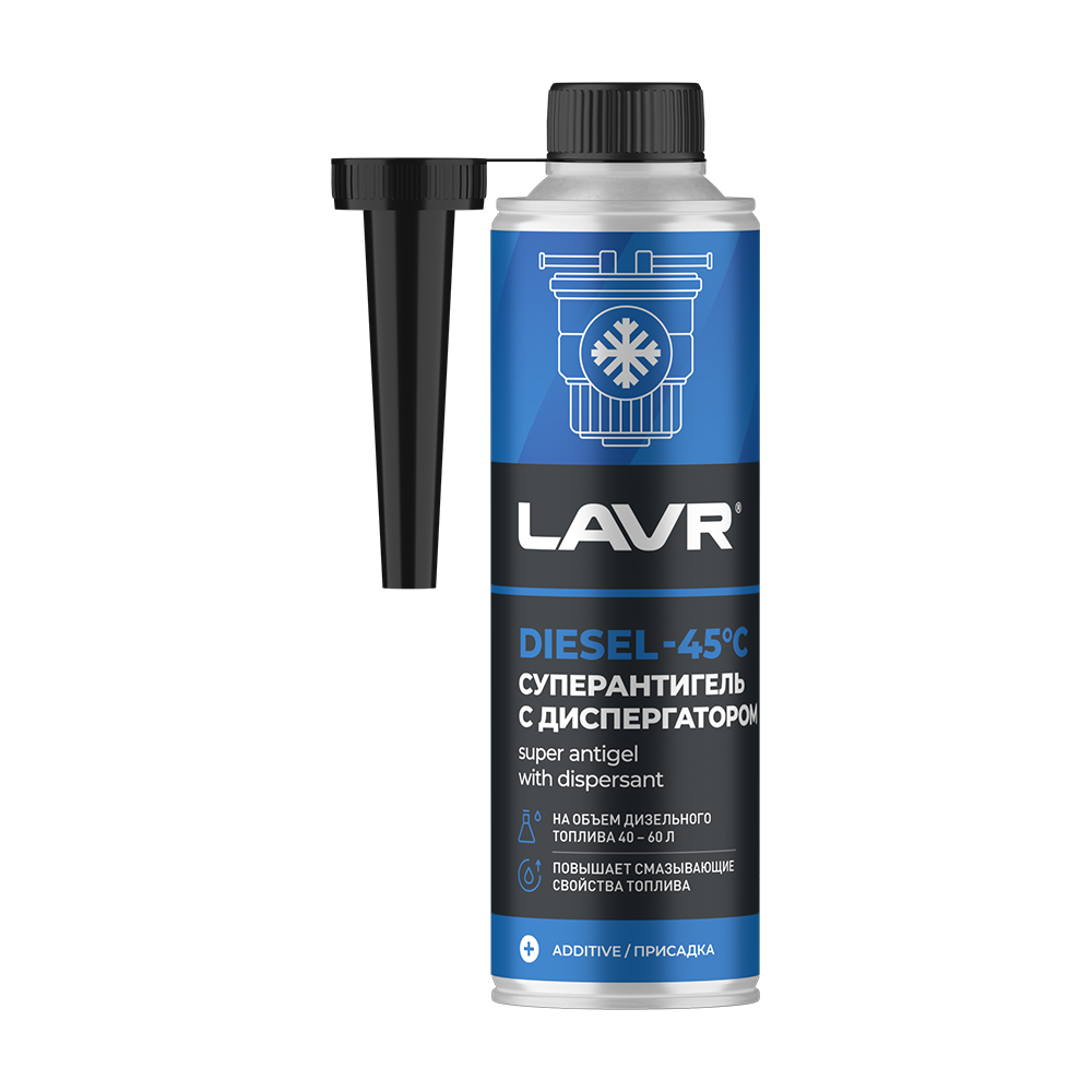 Суперантигель с диспергатором в дизель на 100-140 л LAVR Ln2114 – депрессорная присадка для снижения предельной температуры фильтруемости и застывания дизтоплива. Предотвращает образование ледяных пробок, защищает фильтры от забивания парафинами даже после длительного простоя на морозе, смазывает топливную аппаратуру. Суперантигель максимально эффективен при введении в топливо до его помутнения. Присадка рекомендована для постоянного использования во всех типах дизельных двигателей в холодное время года.