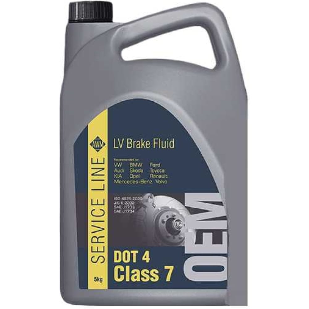 - Тормозная жидкость AWM превосходит требования, содержащиеся в спецификациях нового стандарта ISO 4925 class 6.