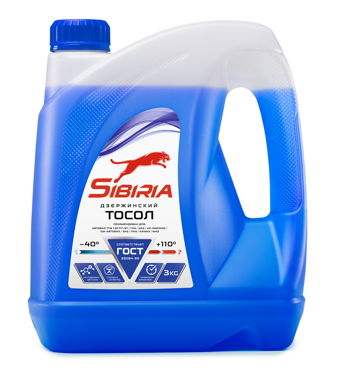 Жидкость охлаждающая низкозамерзающая «Тосол SIBIRIA -40» В охлаждающей системе используется при температурах от -40°С до +115°С.