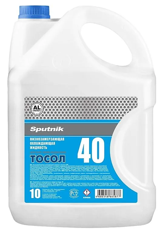 Тосол Sputnik А-40М. Представляет собой водный раствор этиленгликоля с добавлением антикоррозионных, стабилизирующих, антивспенивающих присадок и красителя. По физико-химическим показателям соответствует ГОСТ 28084.