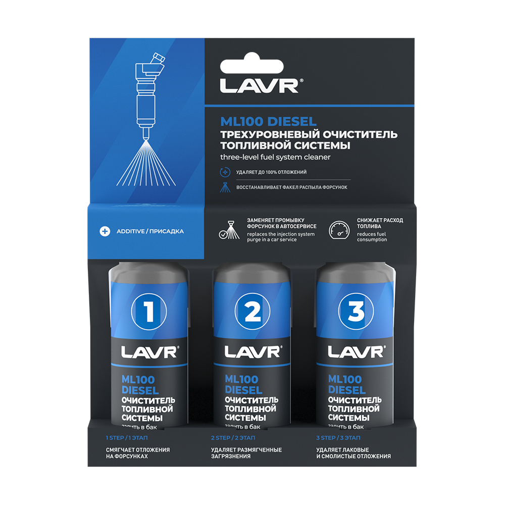 LAVR Трёхуровневая очистка топливной системы ML100 DIESEL engine three-level cleaning system 3*120мл. 360 мл. в Кургане