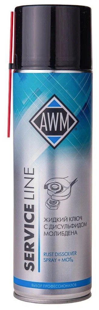 Жидкий ключ с дисульфидом молибдена AWM 411042006 - Профессиональный продукт с высокой проникающей и смазывающей способностью для отвинчивания приржавевших, пригоревших и прикипевших автомобильных крепежей. Глубоко проникая в зазоры между деталями, смазка быстро возвращает подвижность резьбовым соединениям. Обеспечивает долговременный эффект, значительно снижая трение при повторном использовании обработанных деталей.